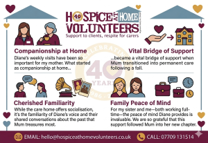 Our volunteers offer a free service that provides strength and encouragement at a difficult time. We offer practical help where it is needed to those suffering a life limiting illness and their family and carers.